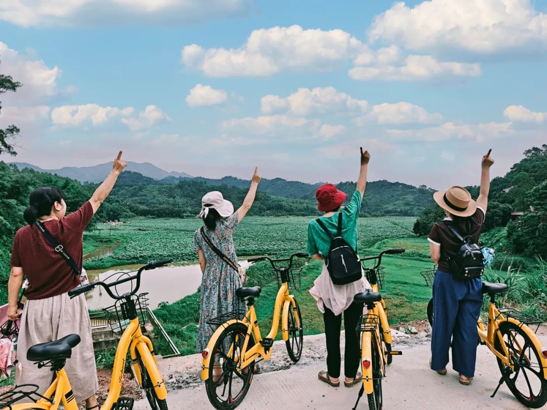当天,广宁的陈女士姐妹四人也来到了镇南村。她说这里没有工业的繁忙和商业的喧嚣,仿佛进入世外桃源一般。她们租赁了自行车一路骑行,在质朴的乡野间享受宁静的自由。